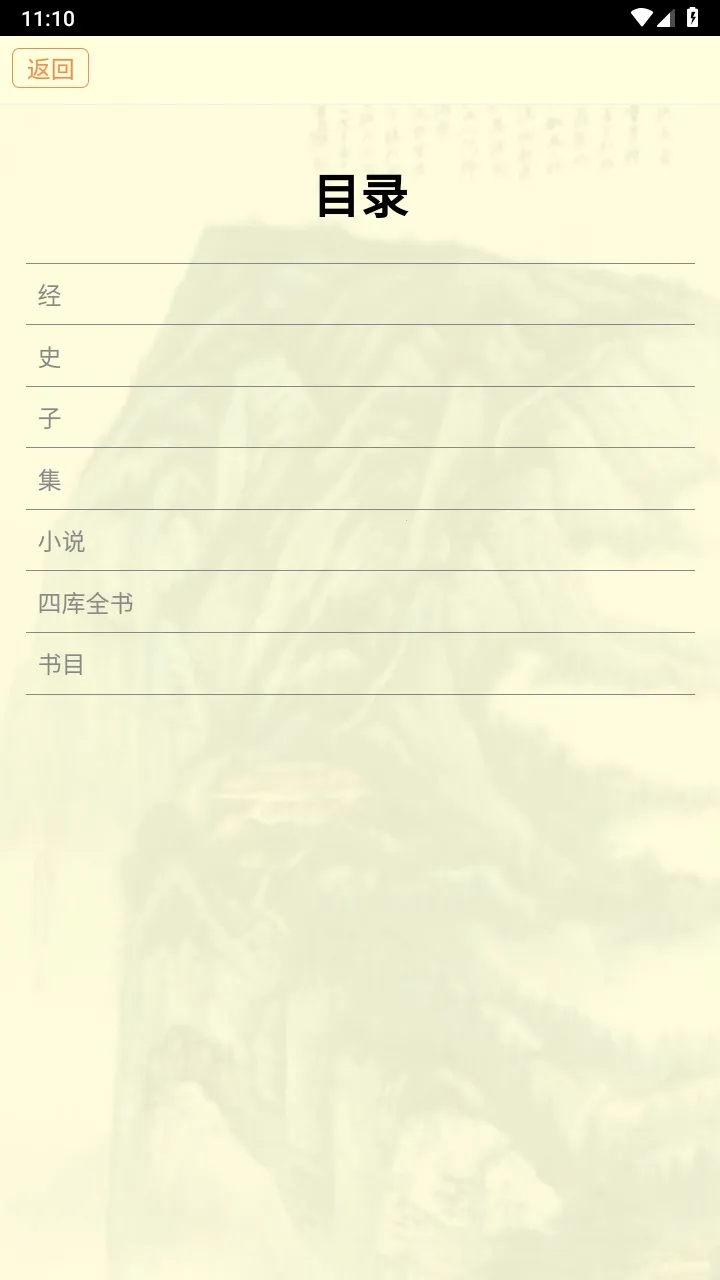 2. 便捷查找:主界面有目录功能,点击可看到经史子集小说四库全书书目等分类,方便查找古籍;在搜索页面输入书名关键词,能快速定位到具体书籍,节省浏览时间。