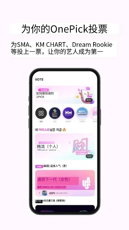 my1pick官方正版下载安卓版是全球KPOP粉丝平台,用于投票应援。可给偶像投票赢门票周边,还有广告支持等福利。有互动社区,能分享故事交流。界面优、支持多语言,定期举办应援活动,方便粉丝追星。