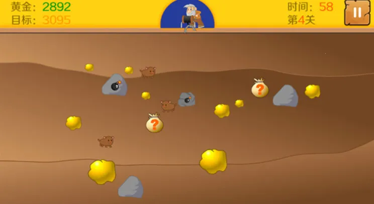 1. 经典玩法:玩家化身为矿工,手持抓钩深入地底世界,抓取黄金、宝石、钻石等高价值矿藏,在限定时间内完成任务。操作机制简洁直观,左右摆动钩爪,精准把握时机点击释放,命中目标。