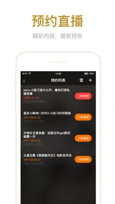 2. 特色预告:可提前发布直播预告,享受做焦点的感觉。