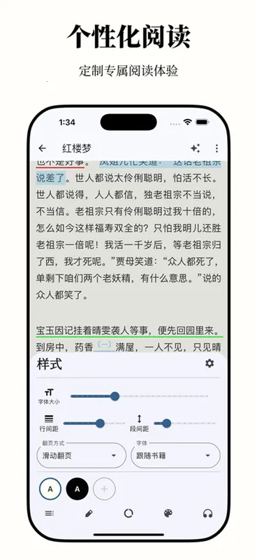 3. 高度可定制化:从阅读界面到功能模块都能自定义,比如主题配色、翻页方式、字体导入等,充分满足您的个性化阅读需求。