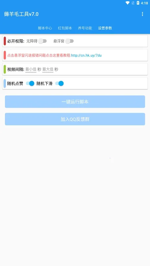 使用时,进入脚本中心选应用设滑动次数,在参数设置页面开启相关权限并配置播放时长等。启动脚本后屏幕会弹出计数窗口,倒计时10秒后运行,注意关闭窗口不会停止脚本,需按音量上键终止。不过,使用中可能会遇到悬浮窗报错的情况。若碰到,别慌,可检查权限是否正常开启,或尝试重新设置相关参数,说不定就能解决问题,继续轻松享受其带来的便利啦。