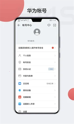 4. 可通过系统设置中的华为帐号模块,便捷管理个人资料、设备授权与隐私设置,掌控更安心。