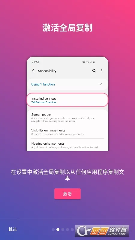 全局复制是一款无需ROOT的万能复制器,支持OCR文字识别复制。能提取手机各种内容,突破复制限制,全场景文本复制,多方式激活,免费无广告,数据本地加密,保障隐私,操作极简。