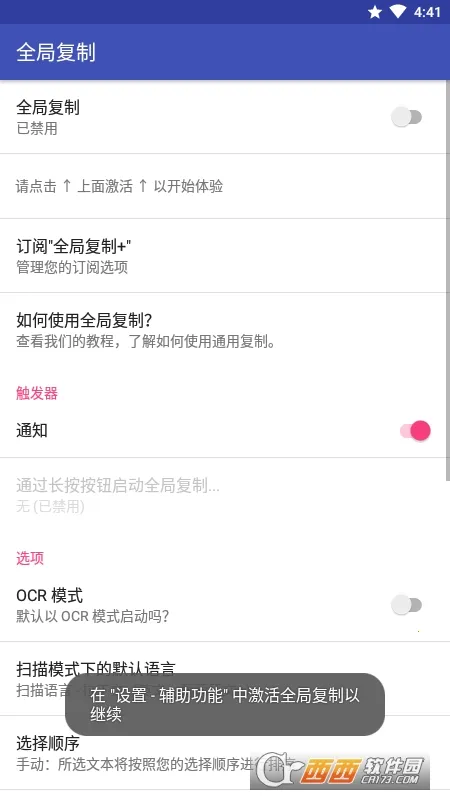全局复制是一款超实用的工具app,能帮你轻松复制手机界面文字。即使有些软件本身没复制功能,它也能搞定,还带有OCR技术,书籍文字也能扫描识别后一键复制翻译,无需登录就能用。