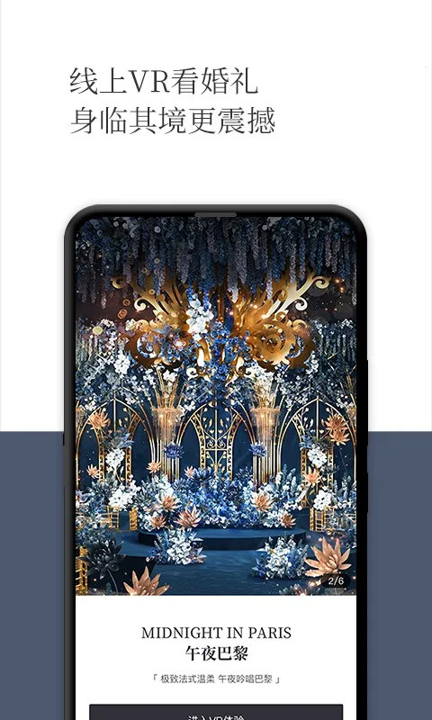 1. 沉浸体验:通过虚拟现实功能,置身婚礼现场,全景沉浸浏览,带来身临其境的交互体验。