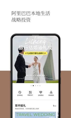 礼成旅行婚礼2025官方正版是一站式婚礼策划软件,为新人提供婚礼筹备服务,涵盖婚前准备、礼服婚车安排等。有畅游花海、全景酒店等特色功能,精选海量商户,享门店优惠,查档期约场地,还有专业婚礼顾问一对一服务。