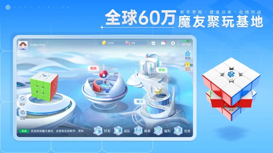 魔方星球又称cubestation,是GAN打造的集合魔方服务的app。全球魔友齐聚,有全水平段功能支持,能找玩伴对战、尝新玩法、参加比赛。新手有拍照复原等,进阶玩家可科学进阶,高手大神能数据分析约战,还新增板块。