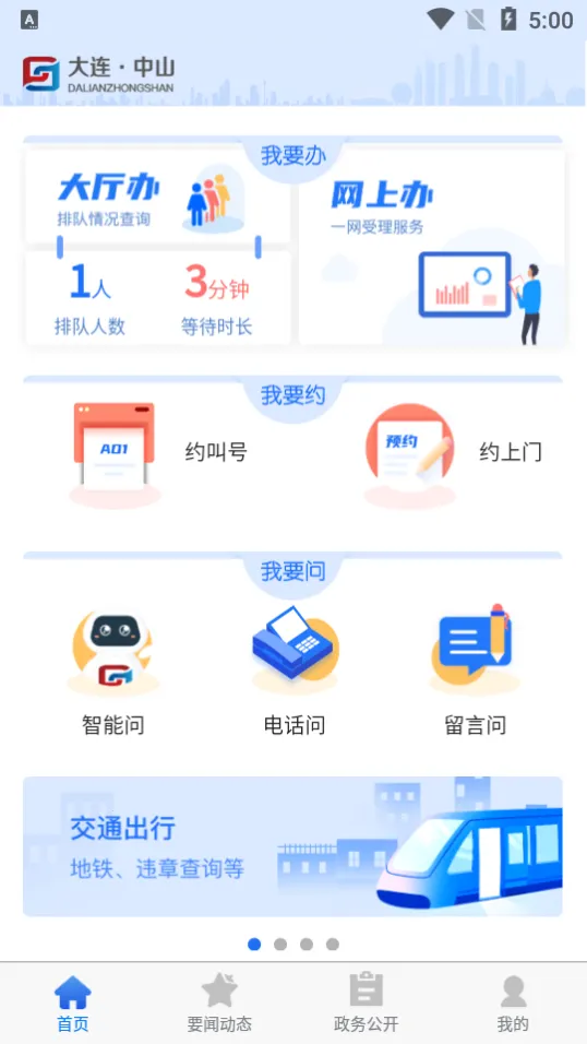 大连中山(政务服务平台)是大连市中山区人民政府官方APP,依要求开发。有丰富资讯,提供网上及大厅办事服务,含预约、叫号等功能,还有政务机器人答疑,提升为民服务水平。