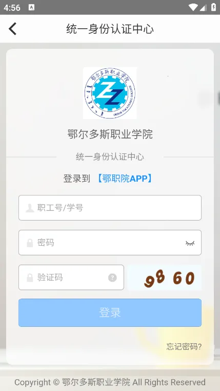 i鄂院app是鄂尔多斯职业学院师生的得力助手。它能帮你轻松解决校园生活中的诸多需求。登录方式简单,使用身份证号登录,密码是身份认证号最后六位,最后一位是字母需大写,登录后绑定手机号码即可。