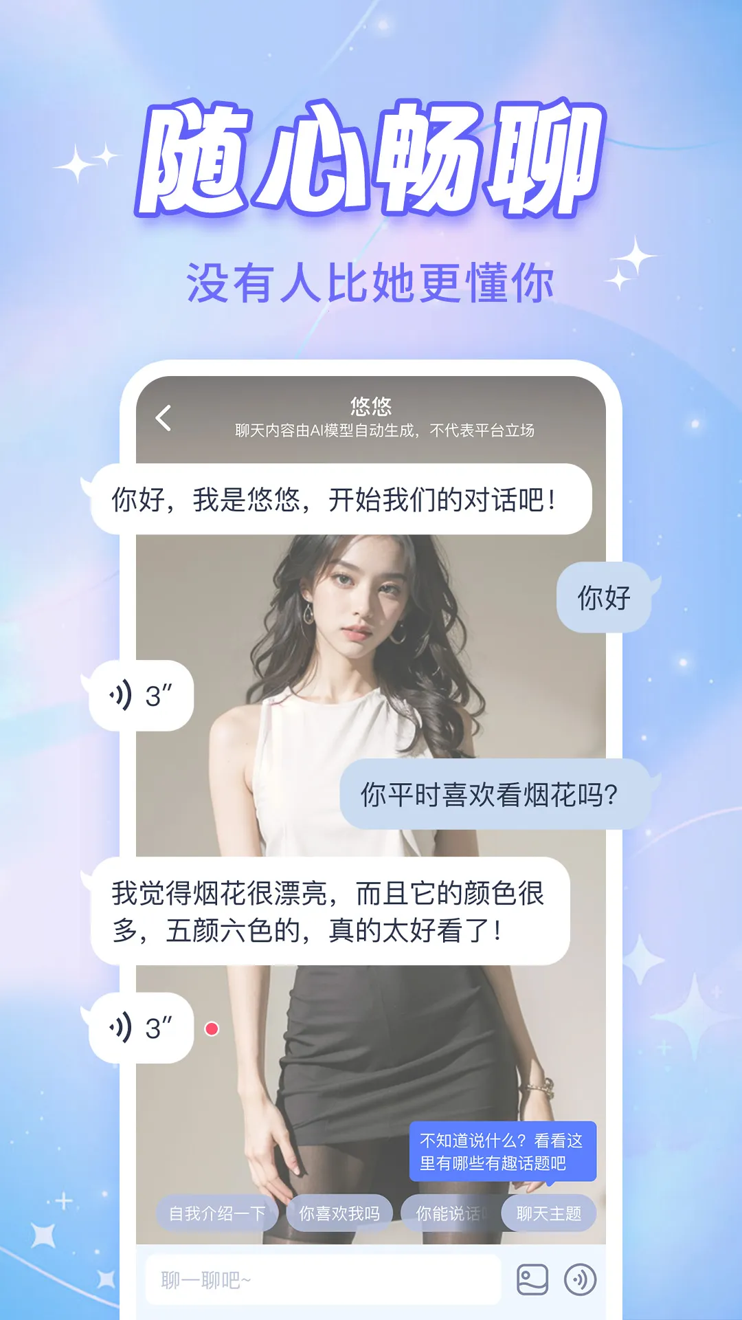 3、多场景陪伴:无论是倾诉心声还是寻求陪伴,随时都能享受贴心陪伴,24小时不间断,公交车上、午休时等均可轻松交流。