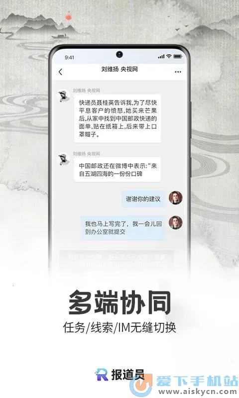 “报道员”是中央广播电视总台央视网推出的移动采编工作平台,专为新闻采编人员设计。它功能强大,能极大提升工作效率。有智能任务系统,精准分配和追踪任务,确保采编工作高效运转。IM 协作系统让团队成员实时沟通协作,信息流转更快。智能审核功能保障新闻内容准确及时。还提供详尽数据分析,助团队了解传播效果和趋势。它支持内容采集、编辑、审核、签发等操作,能上传图文稿件,随时随地编辑新闻稿。全面支持协同工作模式,方便员工协同办公。记者和用户可在线完成选题策划、稿件制作、文稿审核等。多端协同,任务线索、IM 无缝切换,能进行线索任务全流程管理跟踪,还有移动直播推流功能。数据传输加密,保障隐私安全。是新闻采编人员的得力助手,赶紧来下载体验吧!