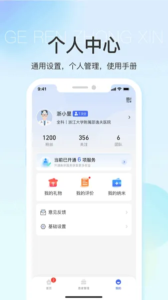 4. 通用设置、个人管理、使用手册等一应俱全,还有多项细节优化,体验流畅,助力医生更高效地进行线上办公。