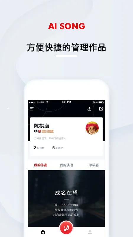 艾颂音乐是专注高品质音乐播放与管理的软件,界面简洁操作流畅,支持多种音频格式,有强大音效调节。还能创作音乐,有智能作词、编曲、作曲等功能,适合各类音乐爱好者,满足多样需求。