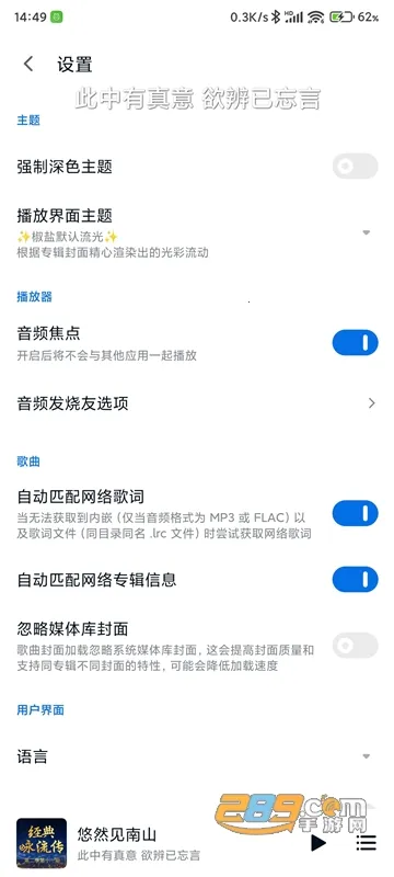 4. 具备沉浸体验,精心设计的播放页面,营造浓厚音乐氛围,让听歌更有趣。