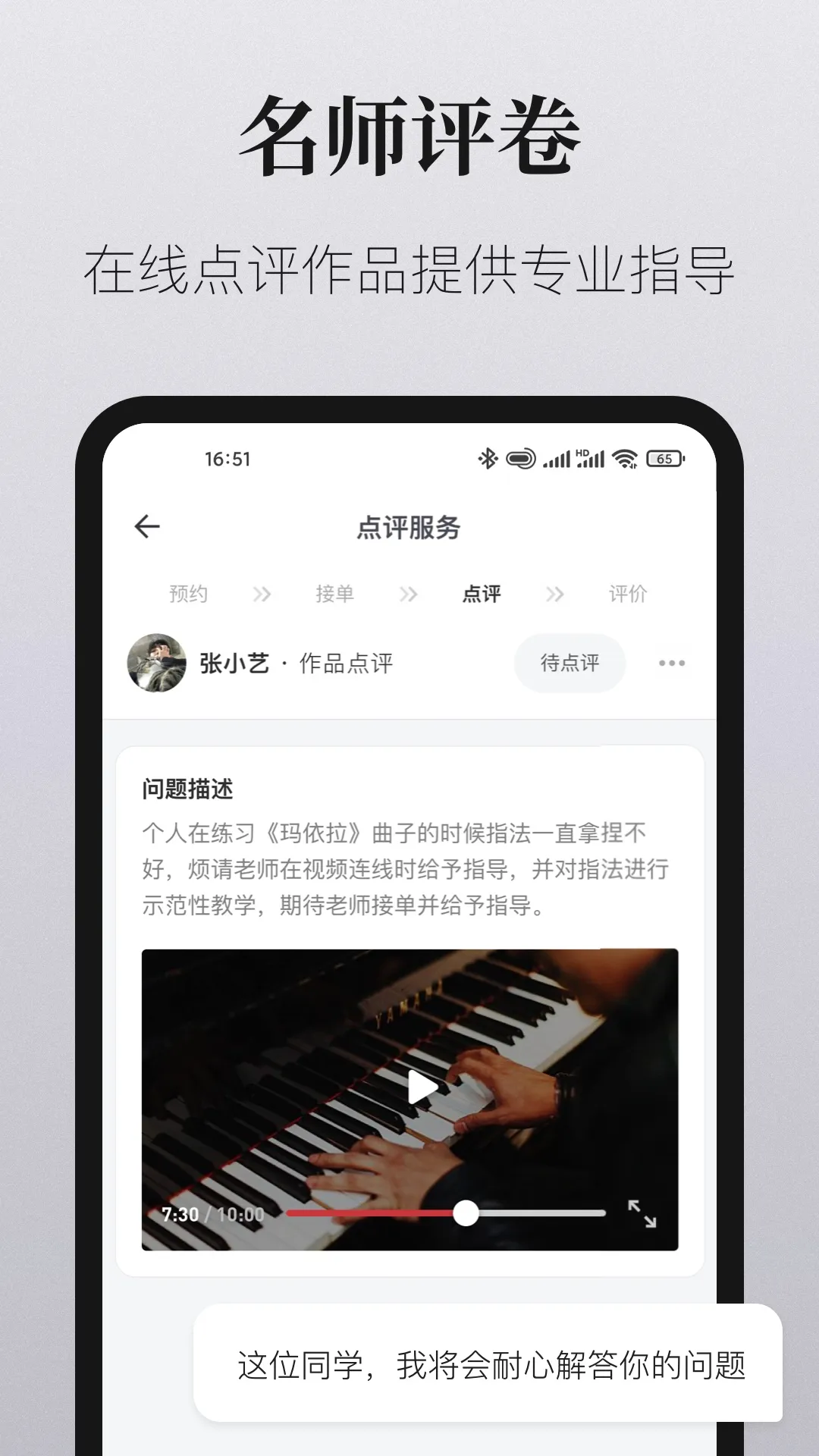 4. 具备名师评卷功能,能对进修结果、操练作品进行剖析,让学艺之路无忧。