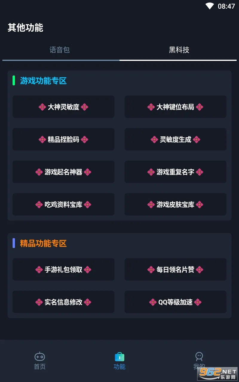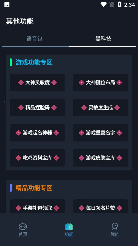 4、免费且功能丰富:画质功能完全免费,能调整参数全面精细定制画质,内置多种灵敏度参数选项,还有多种语音包素材,提高游戏真实感和沉浸感。