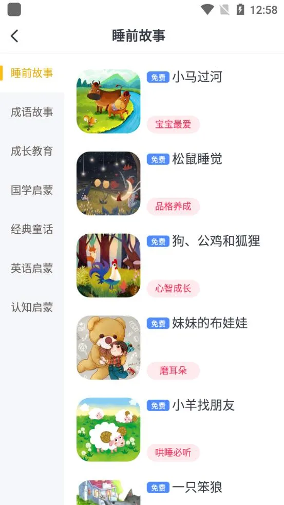 3. 拥有众多特色内容,像国学启蒙、快乐英语、睡前故事等,寓教于乐,培养孩子多方面能力。听经典童话故事寓言故事,激发宝宝想象力;开心字母乐园顺口学英文,英语启蒙超有趣。