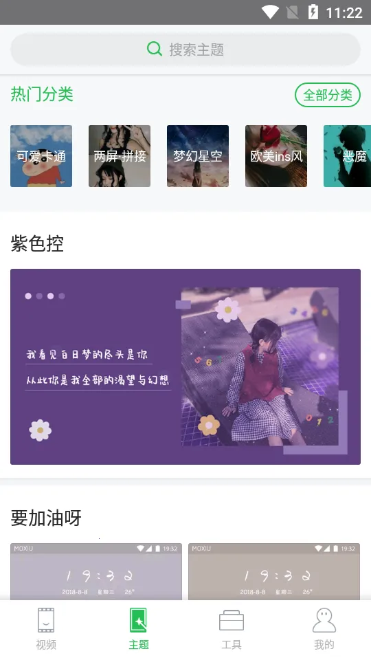 1、海量主题资源丰富:拥有百万精美静态主题,涵盖唯美伤感、清新呆萌、文字娃娃机、明星动漫等各种题材,更有海量视频主题实时更新,涵盖热门影视、优质偶像、热血动漫、二次元游戏、萌宠等多种分类,还支持DIY专属个性视频锁屏。