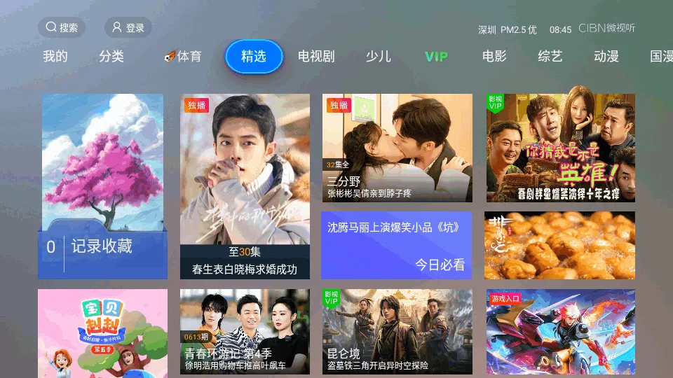 CIBN微视听是一款超棒的电视大屏综合影音应用。它功能强大,能解决咱找片难、追剧烦的问题。频道导航清晰,精选、电视剧、少儿、电影、综艺等栏目一键切换,分类明确。搜索找片超方便,支持关键词搜索片名、人物、题材,快速定位想看的资源。登录后可享受个性化服务,观看体验更连续。VIP专区能浏览高品质内容与权益片库。还支持记录收藏常看内容,方便下次继续播放或快速回到心仪片单。界面设计贴心,海报大图展示焦点高亮清晰,遥控器操作顺手,长辈也能轻松上手。不管是家庭客厅追剧、周末刷综艺还是亲子少儿陪看,它都很合适,让你大屏观影更省心、更好找、更好看,轻松享受视听盛宴。