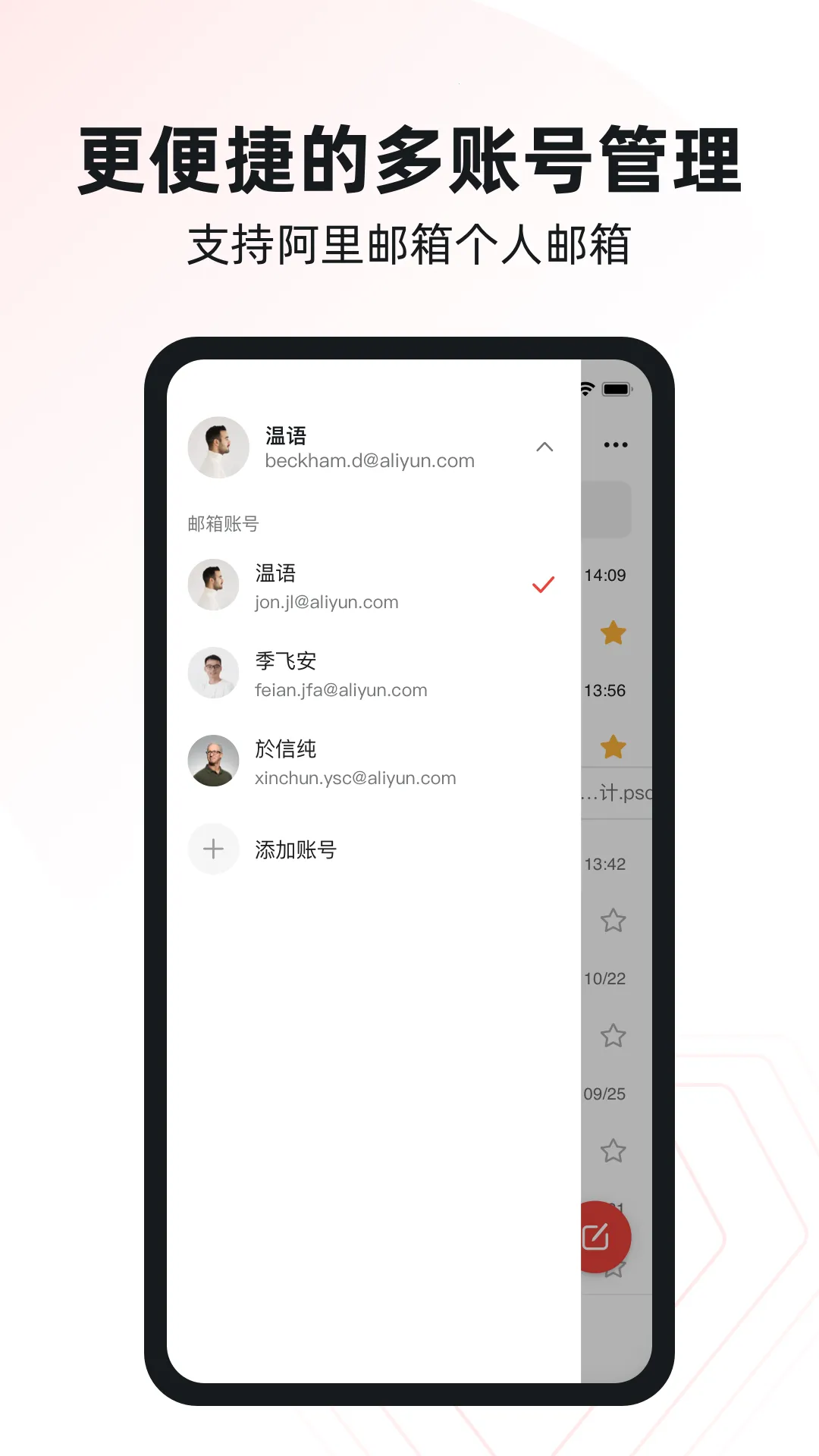 4. 功能丰富:提供邮件收发、分类、搜索和存档功能,集成日历可设置提醒,支持联系人同步备份,还允许添加和管理多个邮箱账户,满足多样需求。
