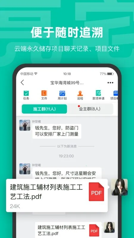 1. 智慧沟通:作为行业经验与技术的结晶,亮宅让内外部沟通畅通无阻,岗位协同高效。其历史记录便于查阅,责任清晰,能有效减少纠纷。
