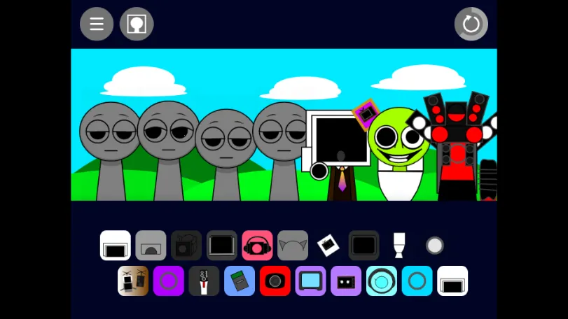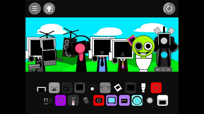 节奏盒子Sprunki马桶人模组2026最新版本是国外玩家自制的魔改版。有多种动感音乐节奏,能体验马桶人元素,可自由组合作曲。还有独特玩法、恐怖效果,能调整音量音质、添加音效,上手易,能激发音乐天赋。