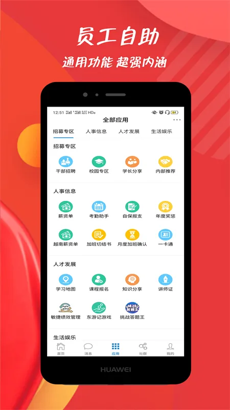 1. 功能全面,涵盖员工沟通、考勤管理、信息文档管理、技能培训等,全面覆盖工作生活娱乐多方面。