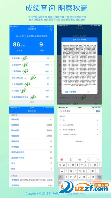 2. 功能丰富:自动切换当前学期,实时无缝更新最新课表,自动计算智育分,自动切换作息时间,自动更新宿舍电费等。