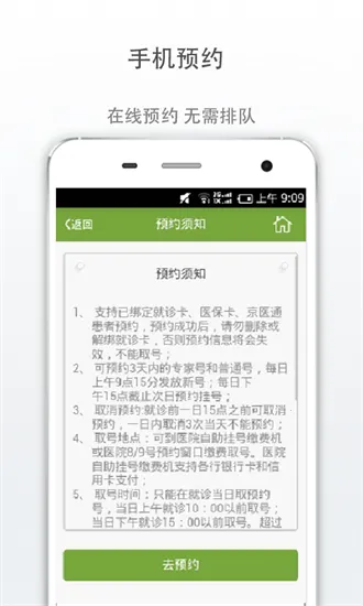 1. 便捷预约:提供全院各科室专家门诊、普通门诊预约,一部手机就能轻松搞定,无需排队等候,极大节省时间。