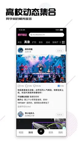 2. 紧跟校园动态:校园活动实时推送正在进行的活动,以便能及时查看并参与;高效动态实时更新推送高效最新动态,可自由查看和点赞评论。