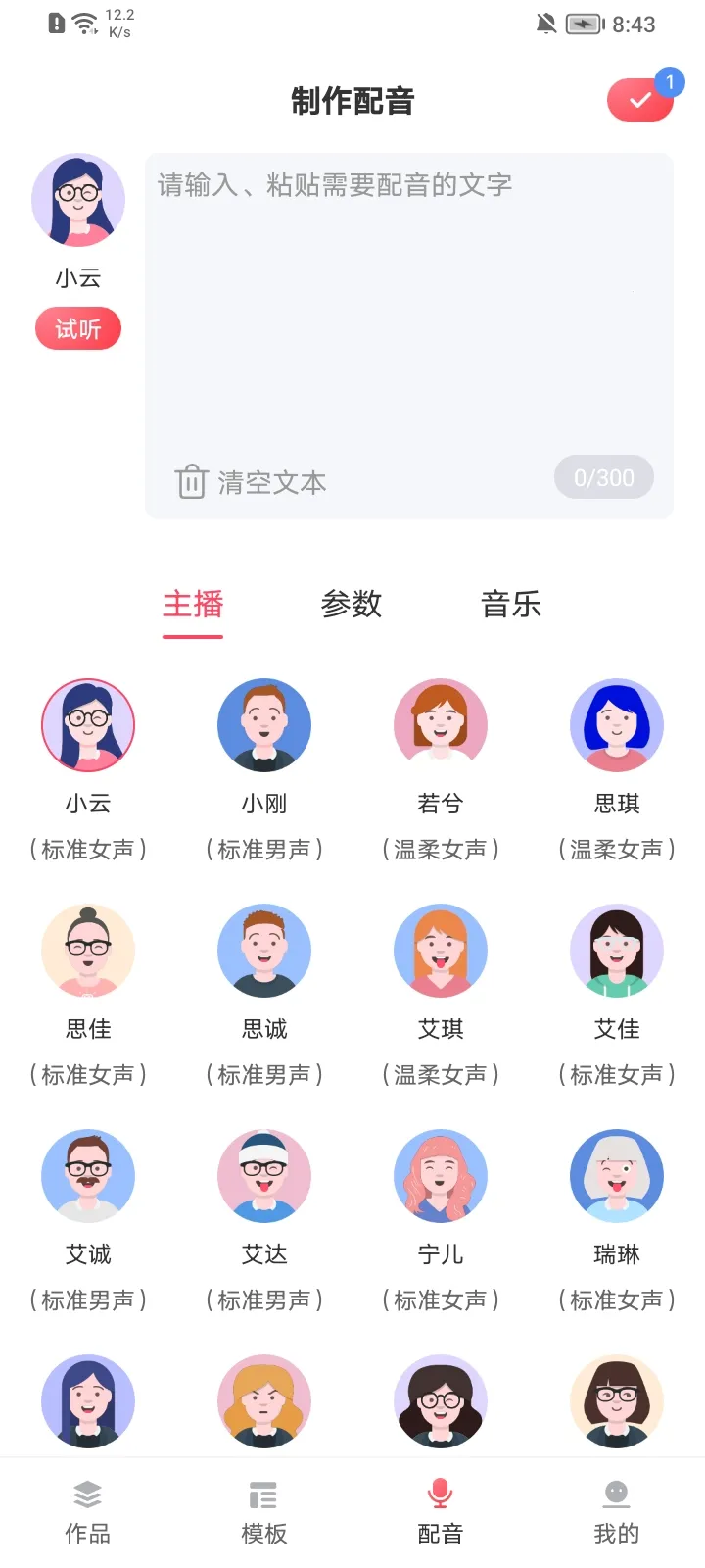 超级配音师app是文字转语音的音频制作软件,有强大智能语音合成技术与丰富虚拟主播资源。输入文字可生成逼真语音,能调参数,还有海量模板和背景音库,适用于多种场景,操作简单易上手。