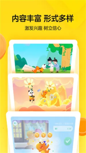1. 趣味动画互动:采用卡通动画教学风格,通过趣味动画互动故事和游戏化课程,让孩子在轻松愉快氛围中学习,使枯燥内容生动有趣,有效激发孩子学习兴趣。