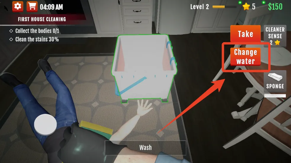8、来到水桶前点击下方的【Wash】就可以了。