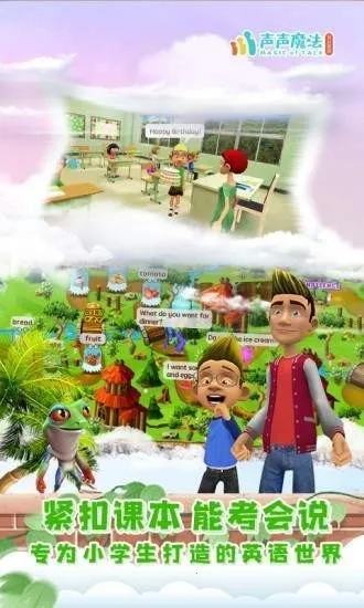 声声魔法英语是成都游导导科技有限公司研发的英语学习软件。结合人工智能语音与3D虚拟技术,模拟英语母语环境,有分级教学、智能语音打分等功能,覆盖多场景角色及大量词汇用语,让孩子轻松学英语。
