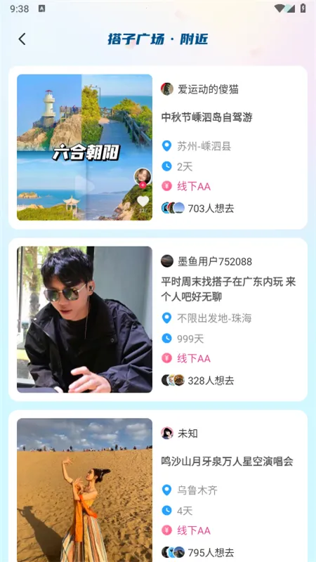 3 支持随时发布旅行动态,用图文形式记录旅途点滴,还能自由结伴享受旅行。
