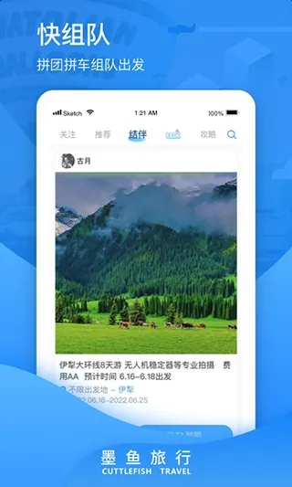 1、自由结伴出行:墨鱼旅行用户可以发布自由行邀约,也能拼团出游,轻松找到世界各地志同道合的驴友,让旅行不再孤单,充满趣味。