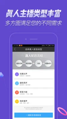 4. 海量资源:提供海量高质量的真人成品录音,风格丰富,效果震撼,满足不同需求,还有数以千计的样音文案和背景音乐任您选择,轻松打造独特的配音效果。