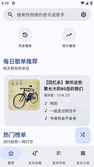 1. 海量资源:汇聚全网多平台音乐资源,涵盖流行、经典等各类歌曲,每日更新热门榜单与歌单推荐,搜索功能强大,助您轻松发现新歌。