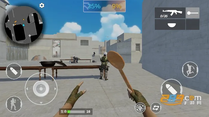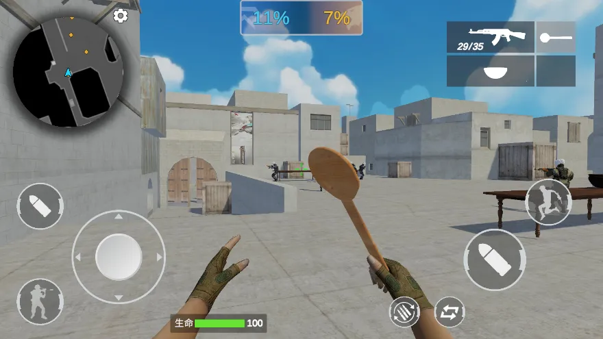 2. 海量武器随意选:武器种类繁多,且非传统枪支,如剪刀、饭勺等,带来别样射击体验。