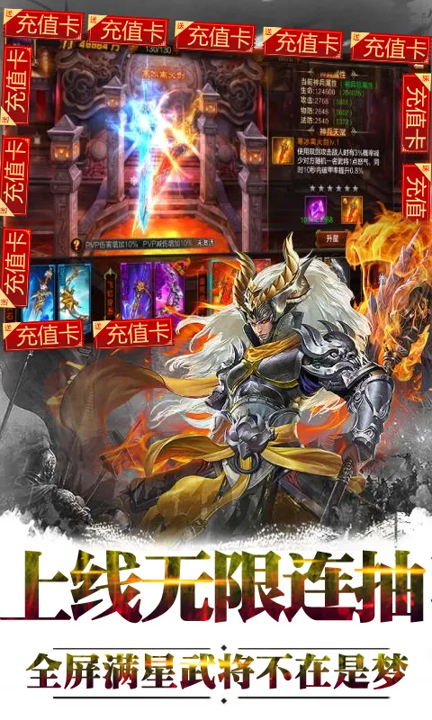 这里福利超多,上线送VIP4超级特权,每日签到领好礼,十连抽重金寻宝卡不停,每日登录领绝版橙色神将。升级方式多样,完成每日任务、主线支线任务、副本等都能获大量经验。还有将魂商店可兑换武将,元宝招募也有机会得心仪武将。总之,想体验热血三国的刺激战斗,享受丰富福利,这款游戏绝对值得一玩!