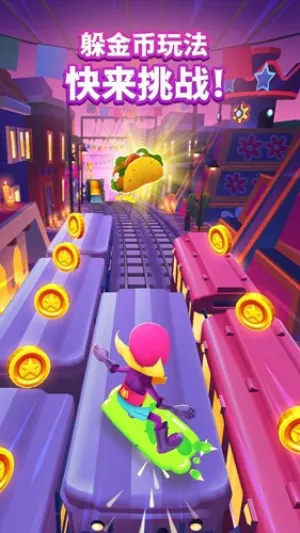 地铁跑酷变速版能满足你对游戏速度灵活调整的需求。它内置变速功能,你可以自主调节游戏运行速度,从低速开始练习熟悉路线,到高速挑战自我,自由度超高。对于新手来说,低速能更好地熟悉路线,高手则能在高速下挑战极限。操作也很简单,通过上下左右划动屏幕就能完成全部动作,指令响应迅速无延迟,角色动作衔接流畅。视觉呈现色彩饱满,场景在地铁轨道与城市背景间切换,层次分明。玩法围绕高速躲避与收集展开,避开保安追捕和障碍,收集金币,还有多种增益道具。除了经典无尽跑酷,还有道具竞赛等多人玩法。通过任务和分数等级可解锁新角色滑板。总之,它整合了跑酷乐趣与丰富内容,值得一试。