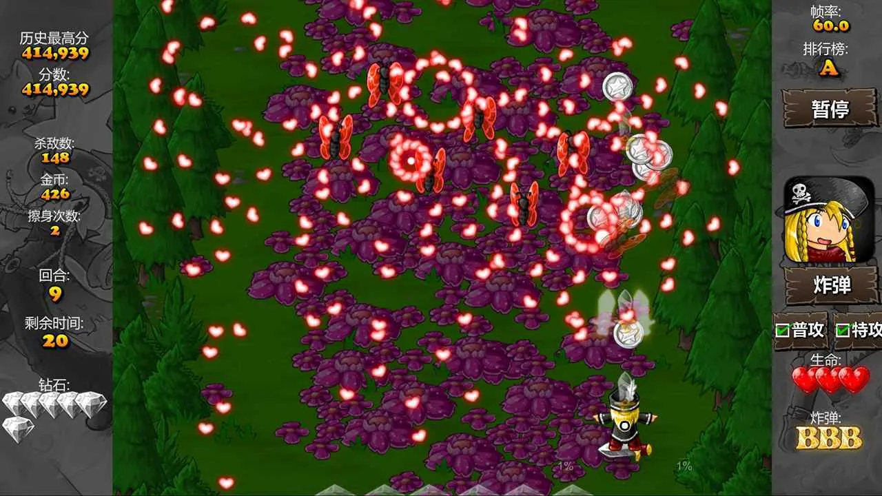 《弹幕天堂2攻略》来啦!这是一款超刺激的飞行射击游戏,从经典Flash游戏移植至Steam平台,现在也有手机版哦。它有着可爱画风与高强度弹幕挑战,超吸引射击游戏爱好者。游戏提供普通、困难与天堂三种难度模式,子弹密度递增,还能解锁特定项目个性化设置难度。开局能从五位能力各异角色选其一,武器与技能系统超丰富,可自由构建专属战斗机体。关卡有七十个风格迥异场景,包括巨型头目战和无尽生存模式。画面延续萌系美术风格,战斗节奏紧凑刺激,支持最多四名玩家本地合作。玩法简单,下载后点击开始,点击暂停可改操作方式,右边选普攻和特效自动攻击,点击炸弹放大招。快来体验这充满刺激与策略的空战游戏吧!