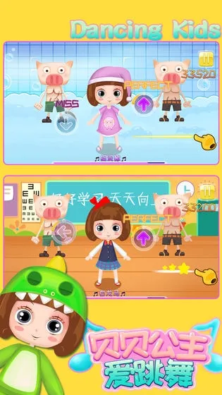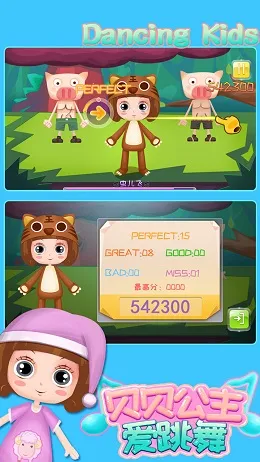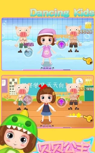 1. 游戏包含多种经典儿歌曲目和流行儿童音乐,孩子能依喜好自由选适合的曲目练舞。