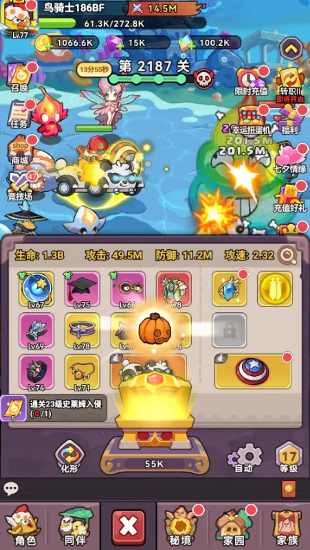 可单独培养每个角色,升级提升生命值、攻击力与防御力。