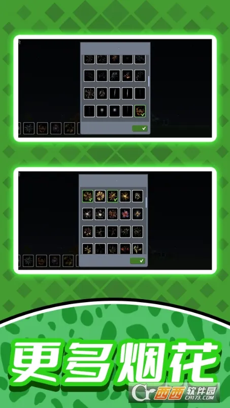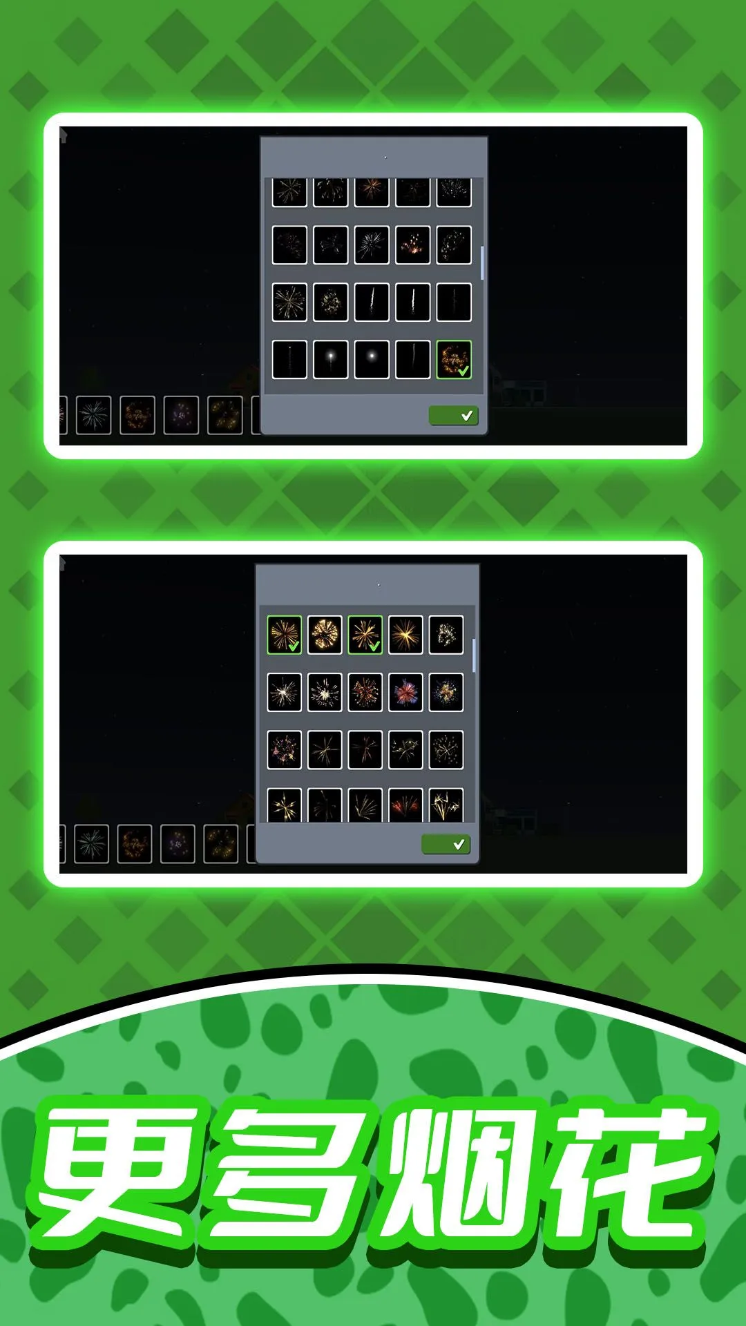 1、丰富烟花选择:拥有多种颜色和种类的烟花,呈现效果各不相同,可自由挑选。