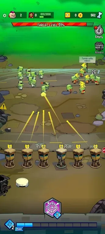 如果你想知道“僵尸国家是哪个国家的”,那不妨来试试这款超好玩的僵尸塔防游戏《僵尸国家》。它能让你沉浸在紧张刺激的策略防御世界里。游戏采用竖屏玩法,你要在防线上放置瞭望塔攻击僵尸。还能合并升级瞭望塔提升战斗能力,应对一波又一波的僵尸攻击。在每波攻击间隙调整战术,考验你的资源分配与战术规划能力。玩法简单易懂,点击画面下方武器放置区域就能放置瞭望塔战斗。准备好后僵尸来袭,消灭一波才能进入下一波,完成战斗可获奖励。这里没有复杂操作,聚焦塔防本质,以简洁竖屏界面承载深度策略,让你体验步步紧逼的生存压力与智取胜利的成就感,尽情享受策略防御的乐趣,满足你对这类游戏的需求。