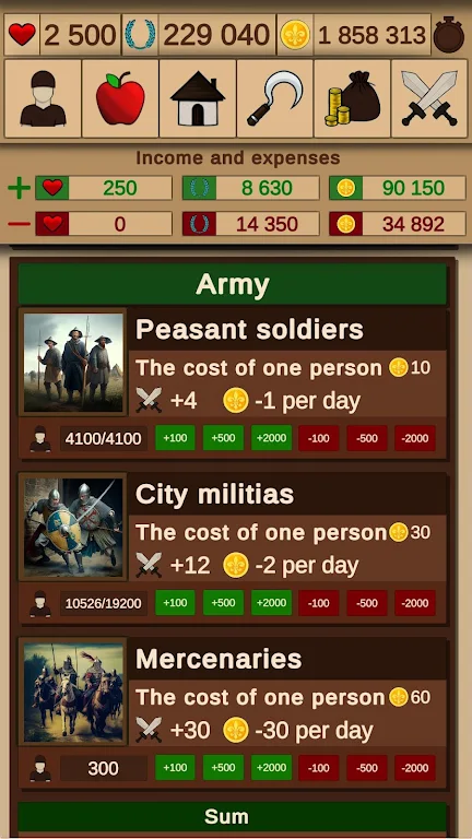 4. 充满策略的军事行动:参与军事行动,包括突袭、十字军东征等,需要合理规划资源,雇用士兵,在战争中获取更多财富和荣耀。