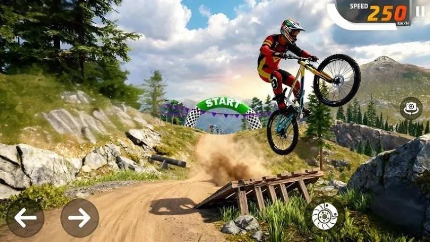 复杂山地骑行:在崎岖复杂的山地道路中开启越野冲刺,极具挑战性,需克服重重困难抵达终点完成任务获取奖励。