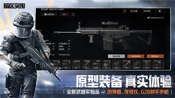 2. 自由改装枪械:成功突围后,可通过高自由度拟真枪械改造系统,利用700多种枪机配件和多种子弹选择,打造专属暗区枪械。